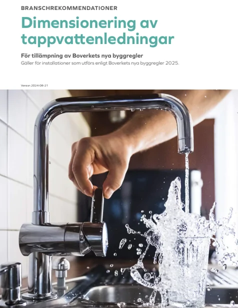 Branschrekommendationen för dimensionering av tappvattenledningar ger bland annat råd om dimensioneringsflöden och sammanfattar befintliga metoder och standarder. Branschrekommendationen ska underlätta för entreprenör, projektör och byggherre i syfte att säkerställa fackmässighet enligt Boverkets författningssamling.